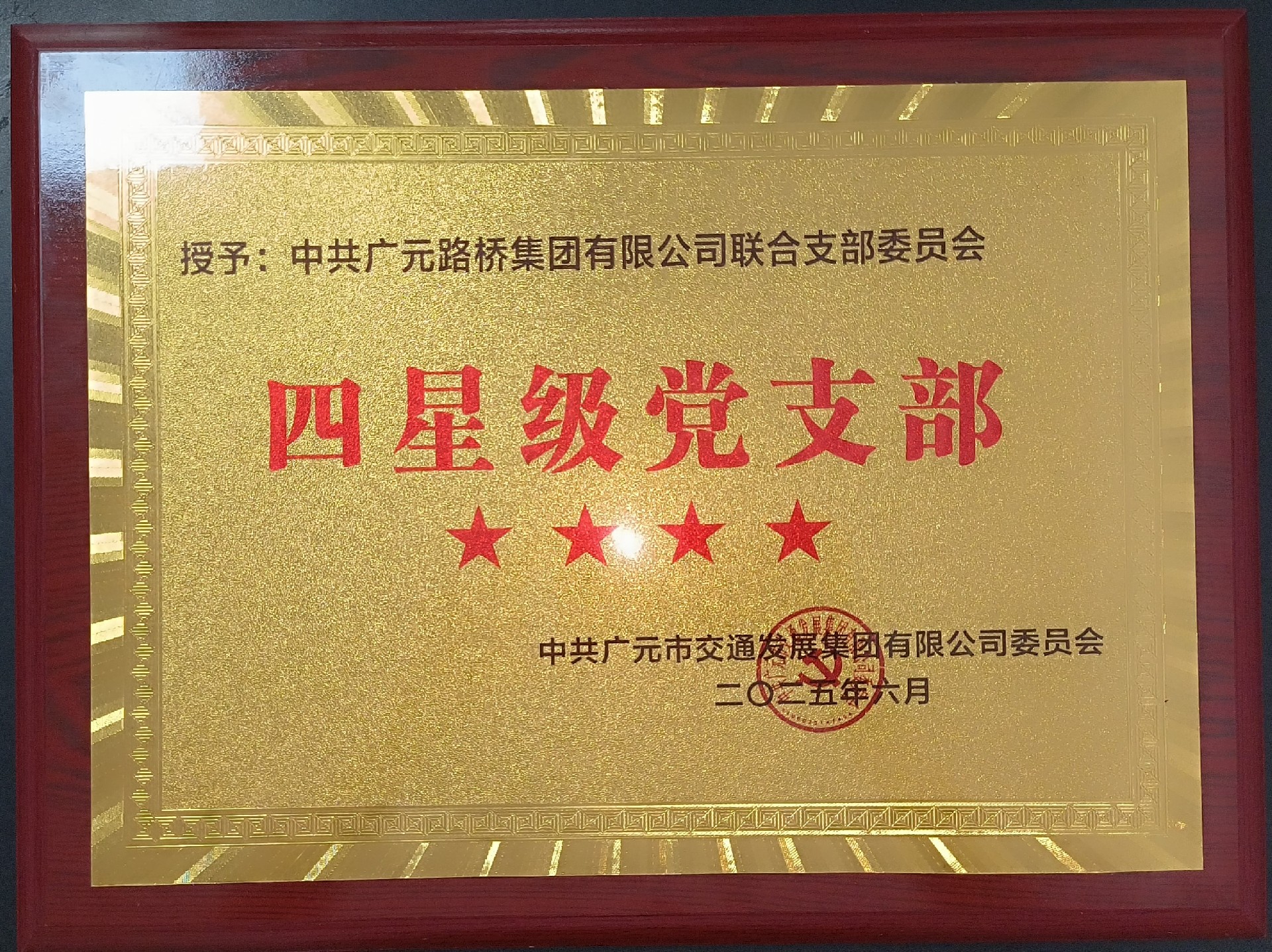 6月27日,市交發集團黨委召開慶祝中國共產黨成立104周年表彰大會,路橋聯合黨支部被評為“四星級黨支部”,并獲“先進黨組織”榮譽稱號。